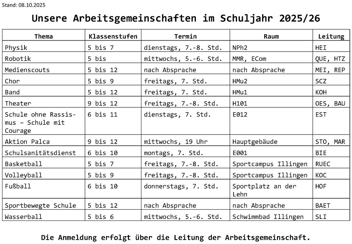 Die Arbeitsgemeinschaften starten am Illtal-Gymnasium in der dritten Schulwoche.