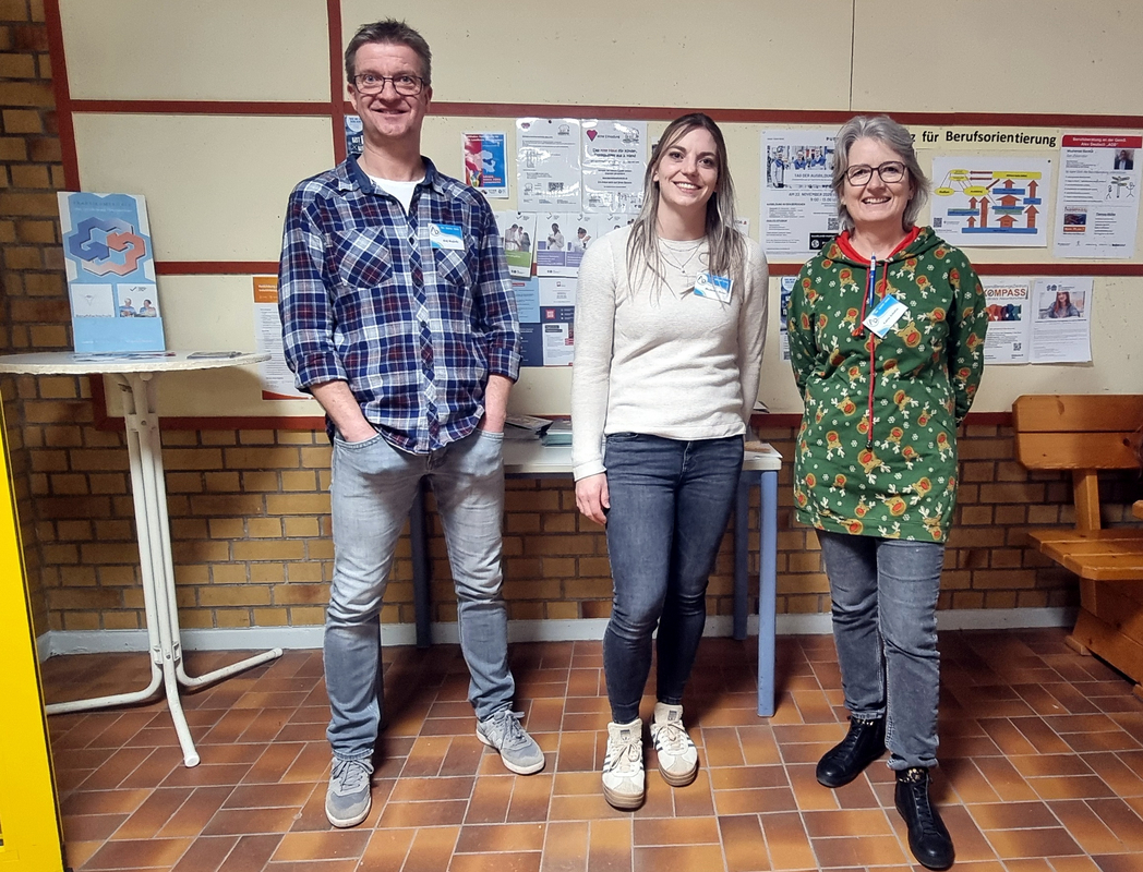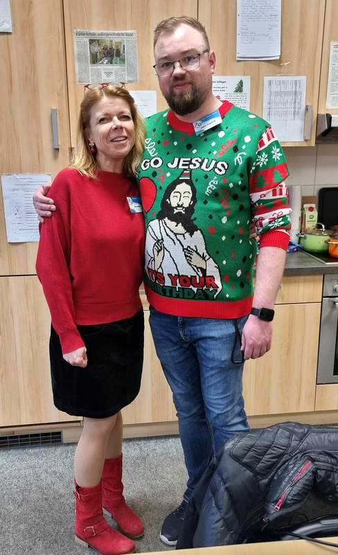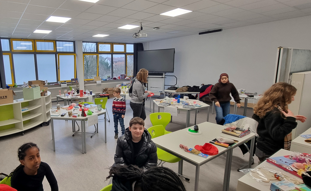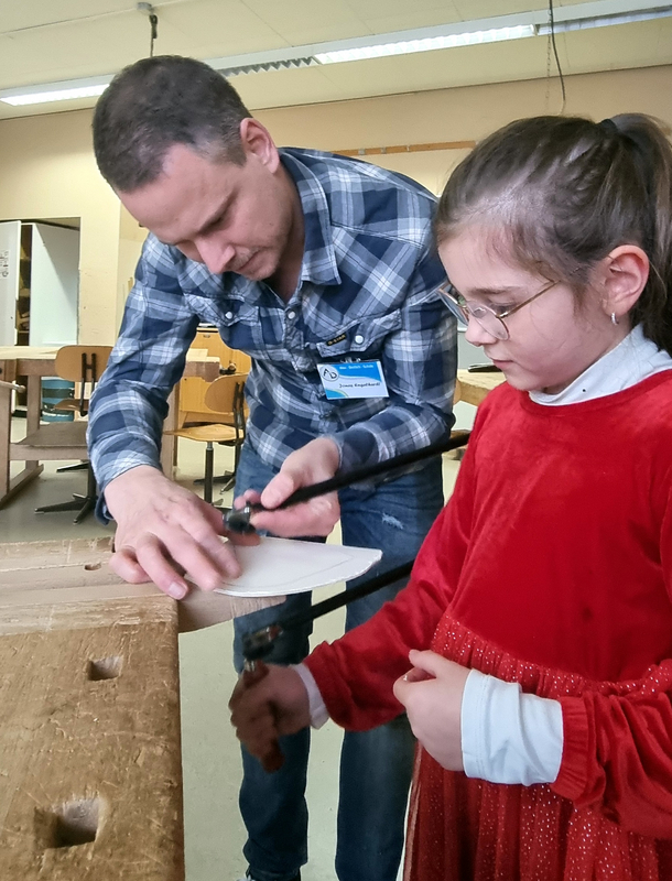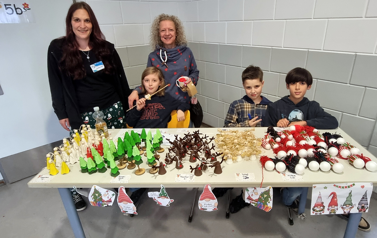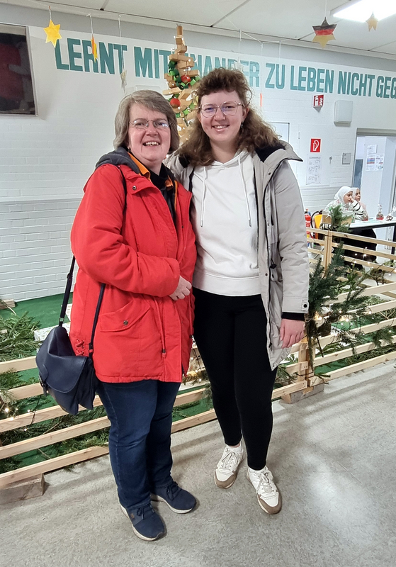 Inmitten dieses festlichen Fluidums hatte es die Schulleitung unter Ulrike Rothermel und ihrem Stellvertreter Olaf Schley wahrlich nicht leicht, einer weiteren Zielstellung an diesem Tag der offenen Schultür gerecht zu werden. Gemeint ist das Bemühen, alle interessierten Viertklässler aus benachbarten Grundschulen und ihre Eltern an einem Infostand gleich neben dem Sekretariat von den zahlreichen unterrichtlichen und organisatorischen Vorzügen einer Ganztags-Gemeinschaftsschule zu überzeugen, eventuelle Vorurteile zu zerstreuen und auf Fragen aller Art Antworten und Auskünfte zu erteilen. Unterstützung erfuhr die Schulleitung dabei auch von Schulelternsprecher Christian Jochum, der außerdem die Mitverantwortung über Kasse und Bon-Verkauf übernommen hatte. „Die Eltern haben durch ihre aktive Mitarbeit und Kuchenspenden auch diesmal einen großen Anteil zum Gelingen der weihnachtlichen Traditionsveranstaltung beigetragen, die seit 2018 in dieser erfolgreichen Kombination stattfindet“, betonte die Schulleiterin. Den familiären Charakter der kleinen Schule im Grünen sieht Ulrike Rothermel zudem durch den Besuch vieler ehemaliger Schülerinnen und Schüler bestätigt. „Dass ehemalige Schüler ihre eigenen Kinder bei uns anmelden wollen, ist Bestätigung für die gute Arbeit, die hier geleistet wird“, ergänzte sie stolz.