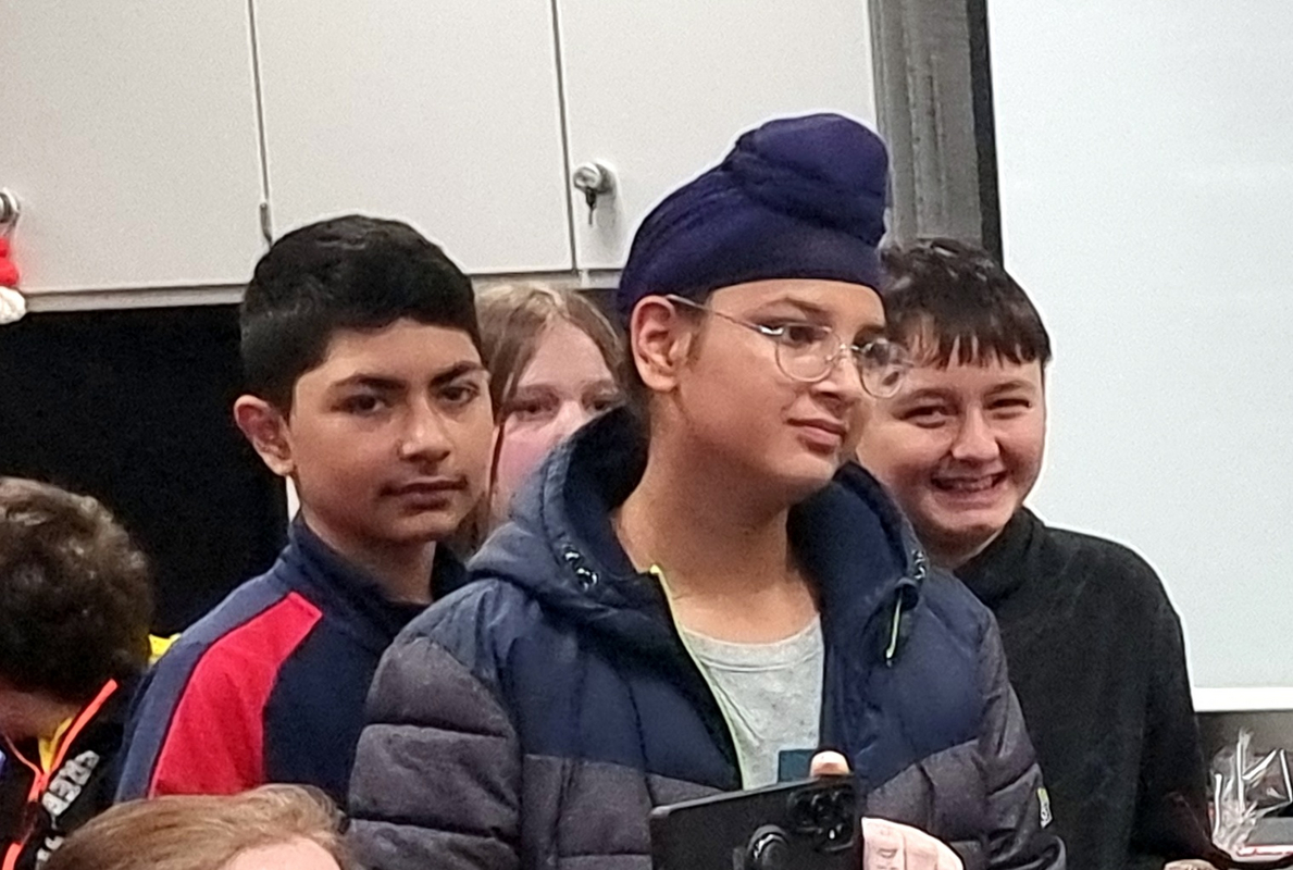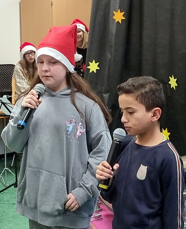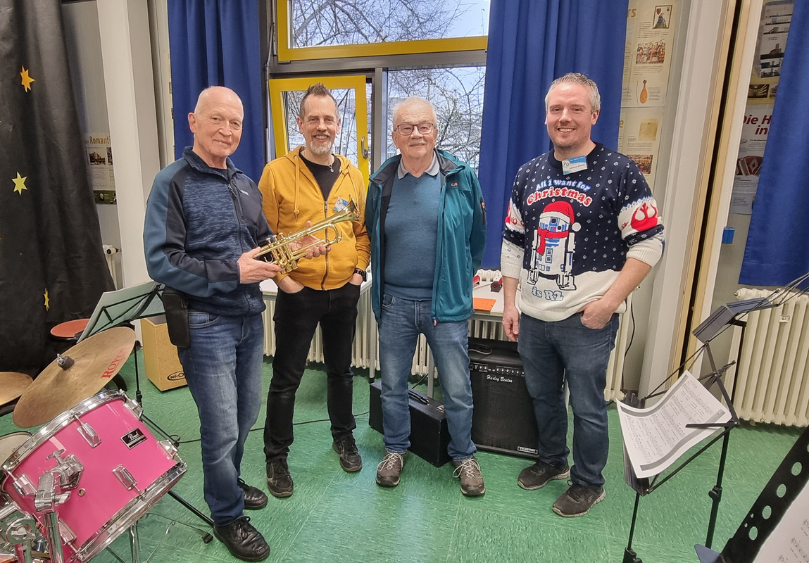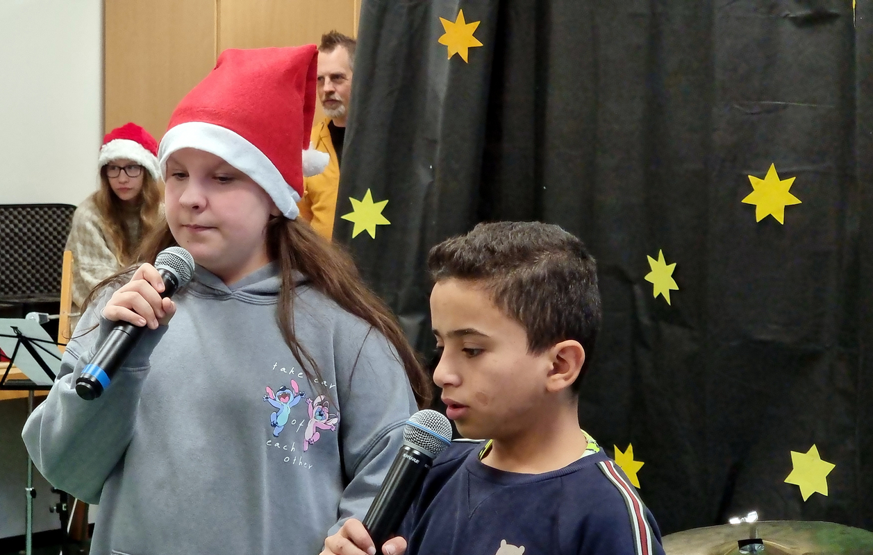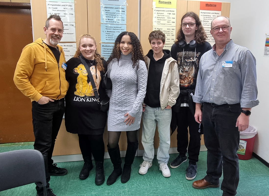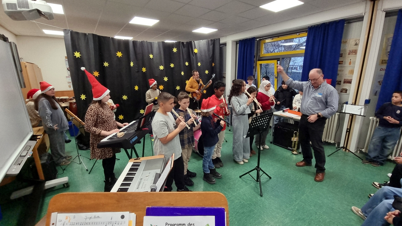 Das sprichwörtliche „Tüpfelchen auf dem i“ bildeten einmal mehr die musikalischen Beiträge verschiedener Schülergruppen und der aus vier Lehrkräften bestehenden „Teachers-Christmas-Band“ unter der Gesamtleitung von Musiklehrer und Moderator Hans-Jürgen Geiger. Das Repertoire reichte vom „Eye of the Tiger-Rap“ über den Beethoven-Song, das selbst vertonte Alex-Deutsch-Lied oder die Sinfonie „Freude schöner Götterfunken“ bis hin zum Weihnachtsklassiker „Jingle Bells“. Gut zweimal so groß hätte der Musiksaal sein dürfen, um allen interessierten Besuchern Platz bieten zu können.