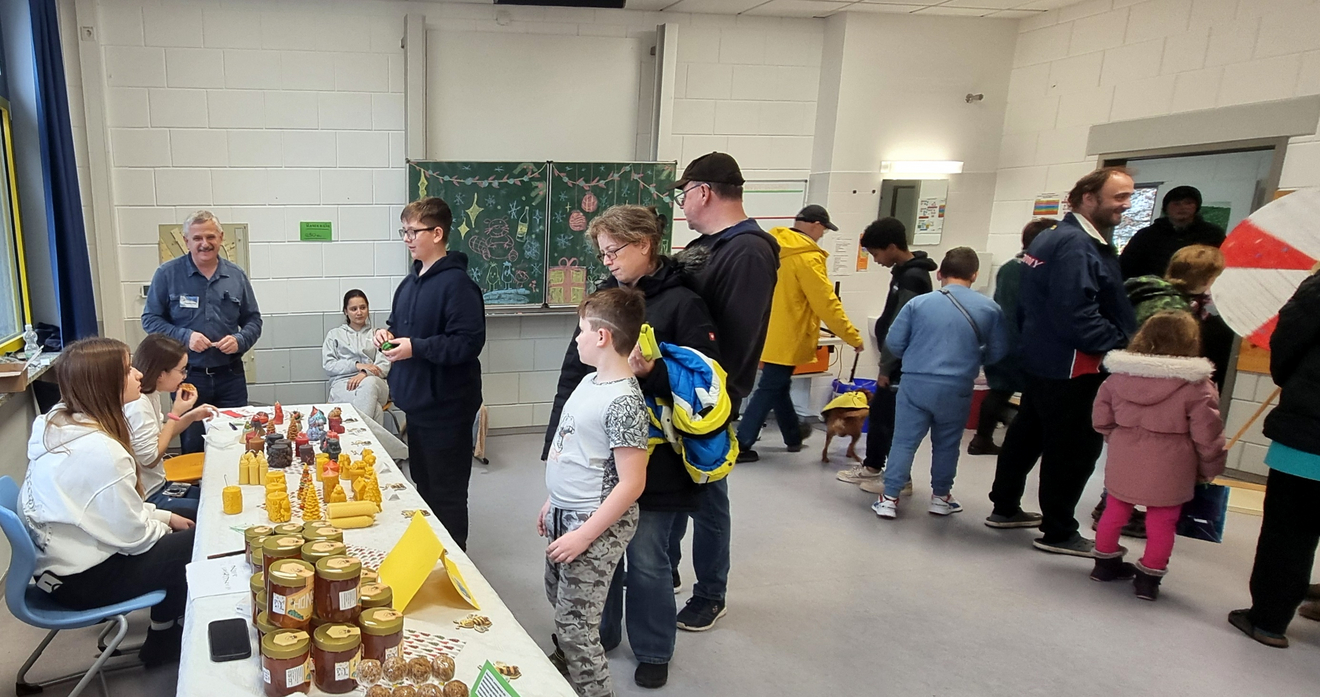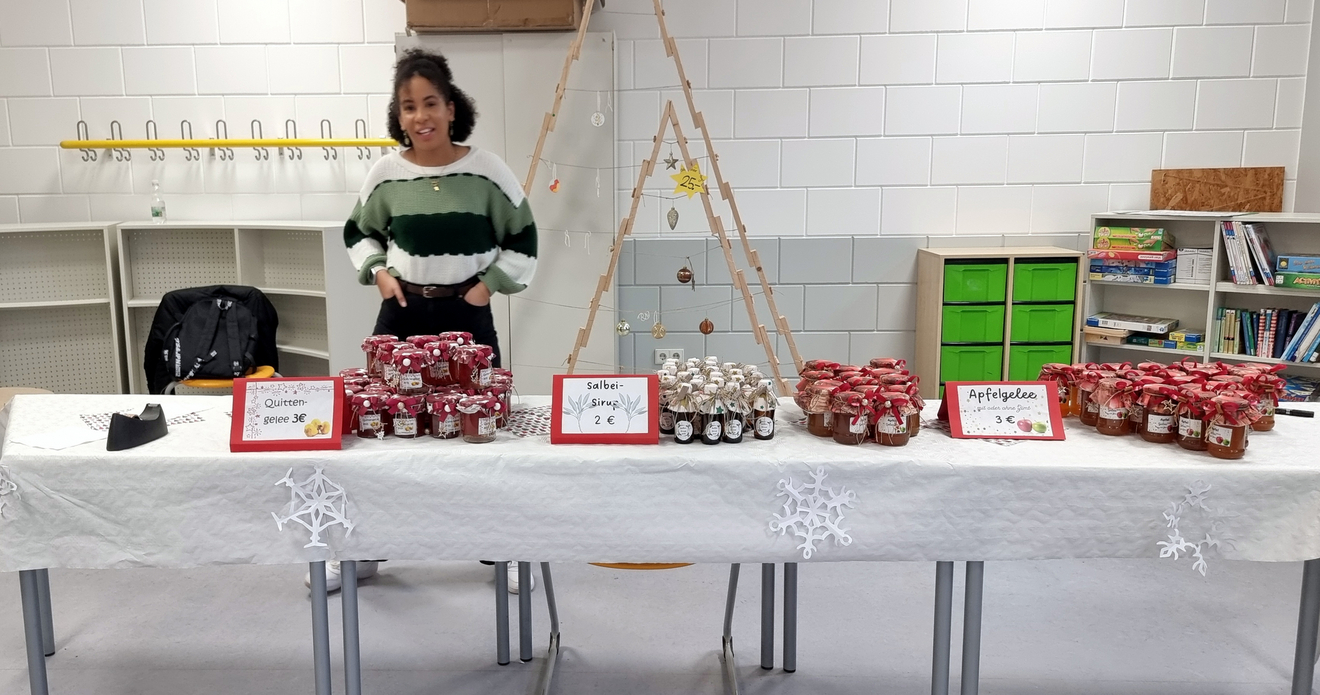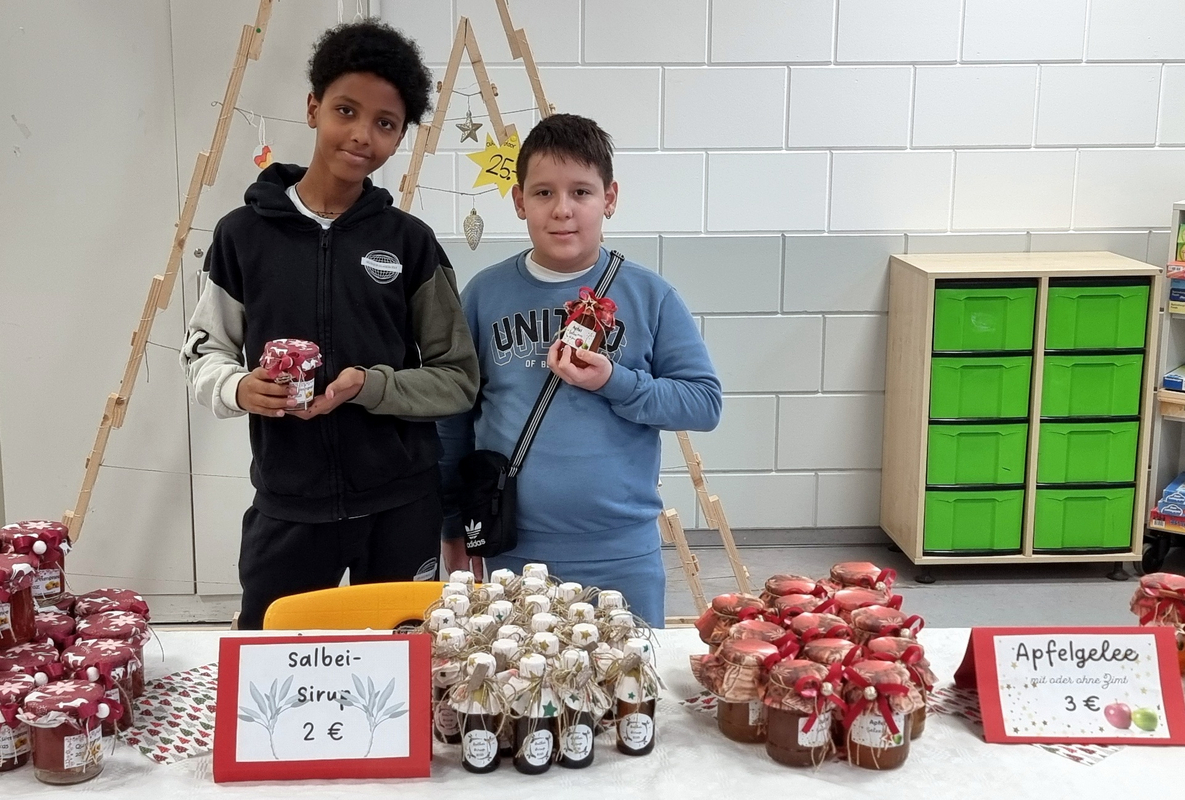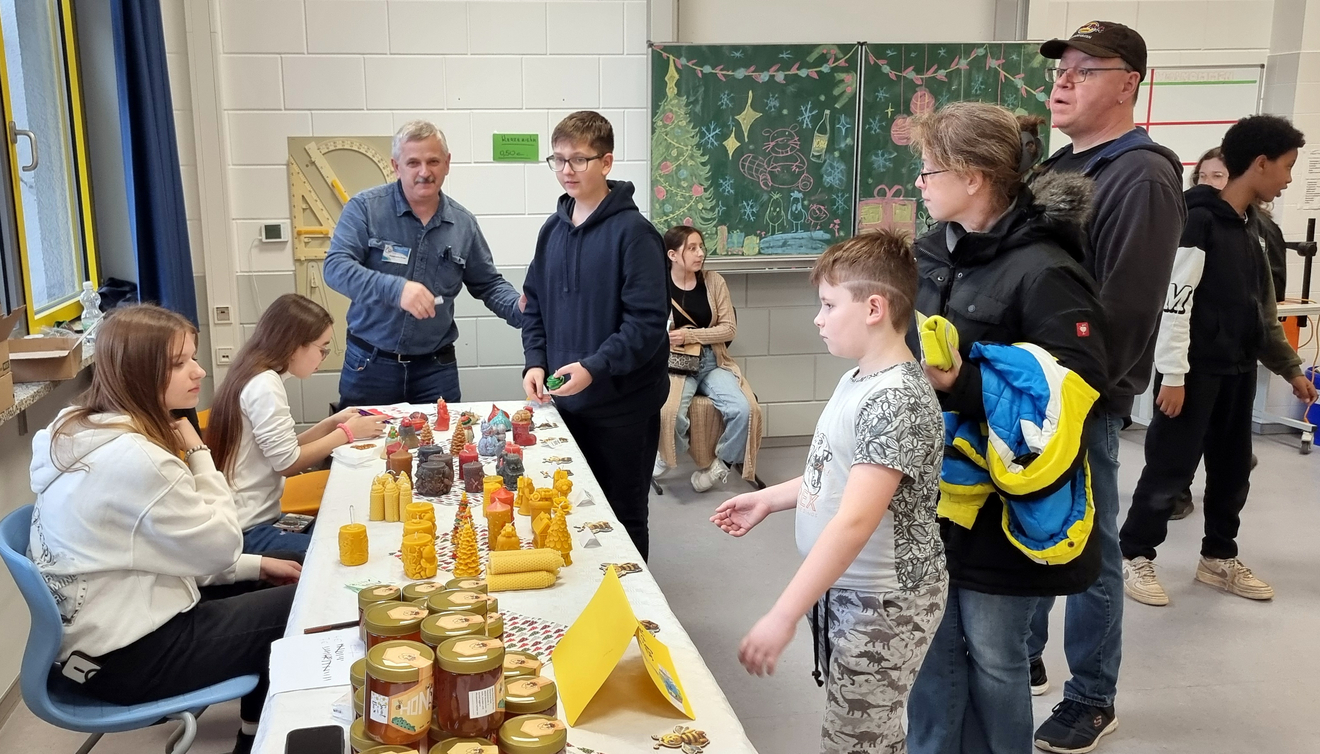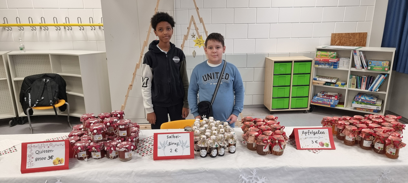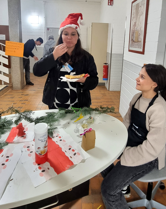 Leckeres wurde an diesem Tag an allen Ecken und Enden gereicht. Ob Kuchen oder deftige Suppe, Zimtplätzchen, diverse Gebäcksorten oder andere leckere Köstlichkeiten aus der modernen Schulküche, für jeden Geschmack war gesorgt. Zum Mitnehmen und Verzehr in den eigenen vier Wänden boten sich feiner und unverfälschter Bienenhonig aus dem prächtigen Schulgarten, exotische Rentier-Trinkschokolade oder Konfitüren in den unterschiedlichsten Geschmacksrichtungen an.