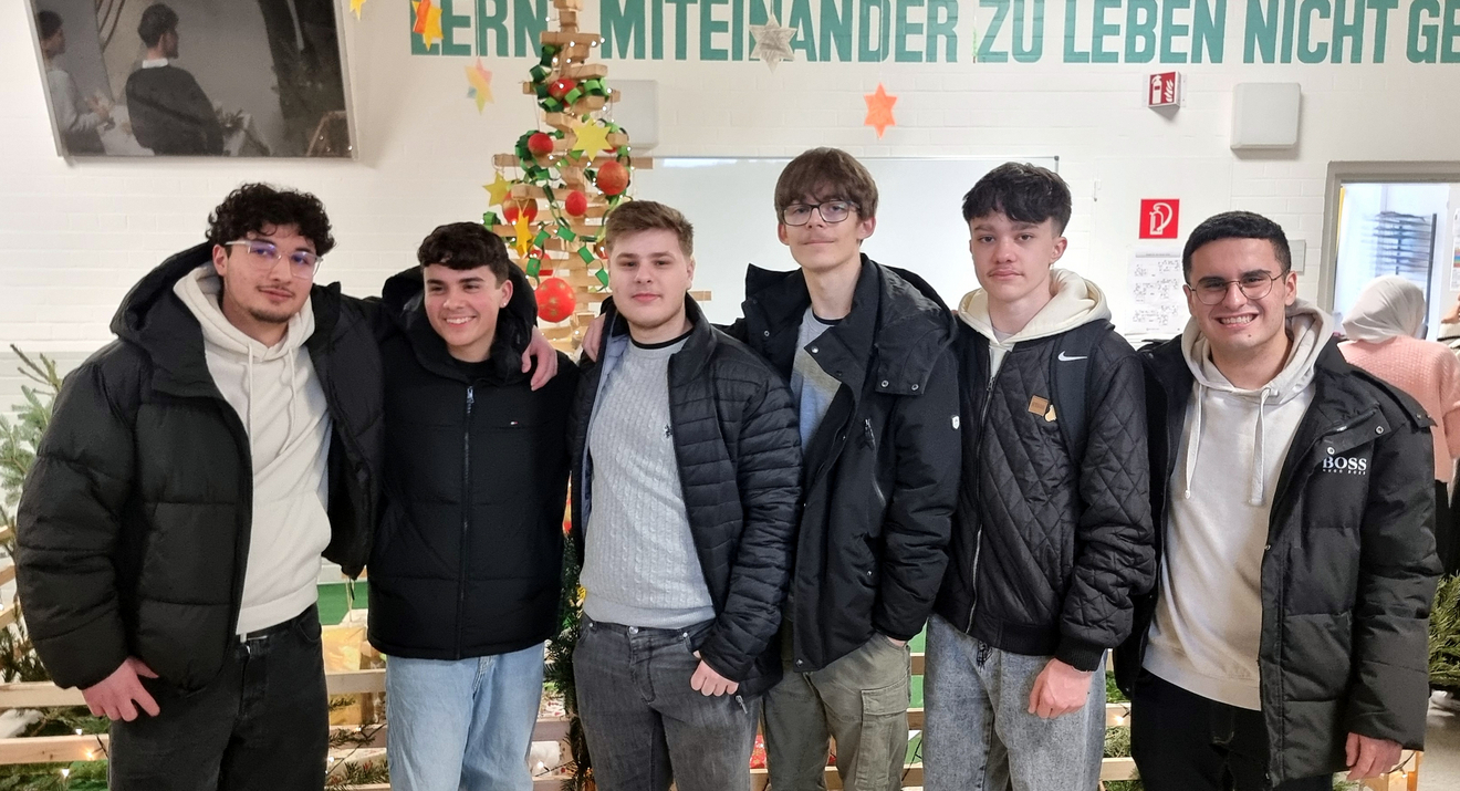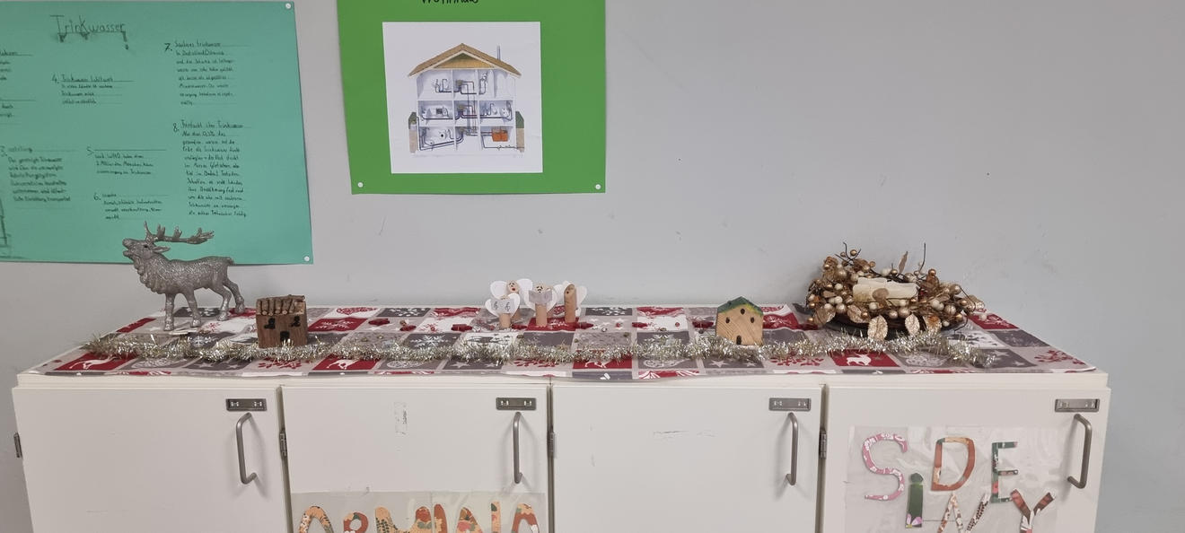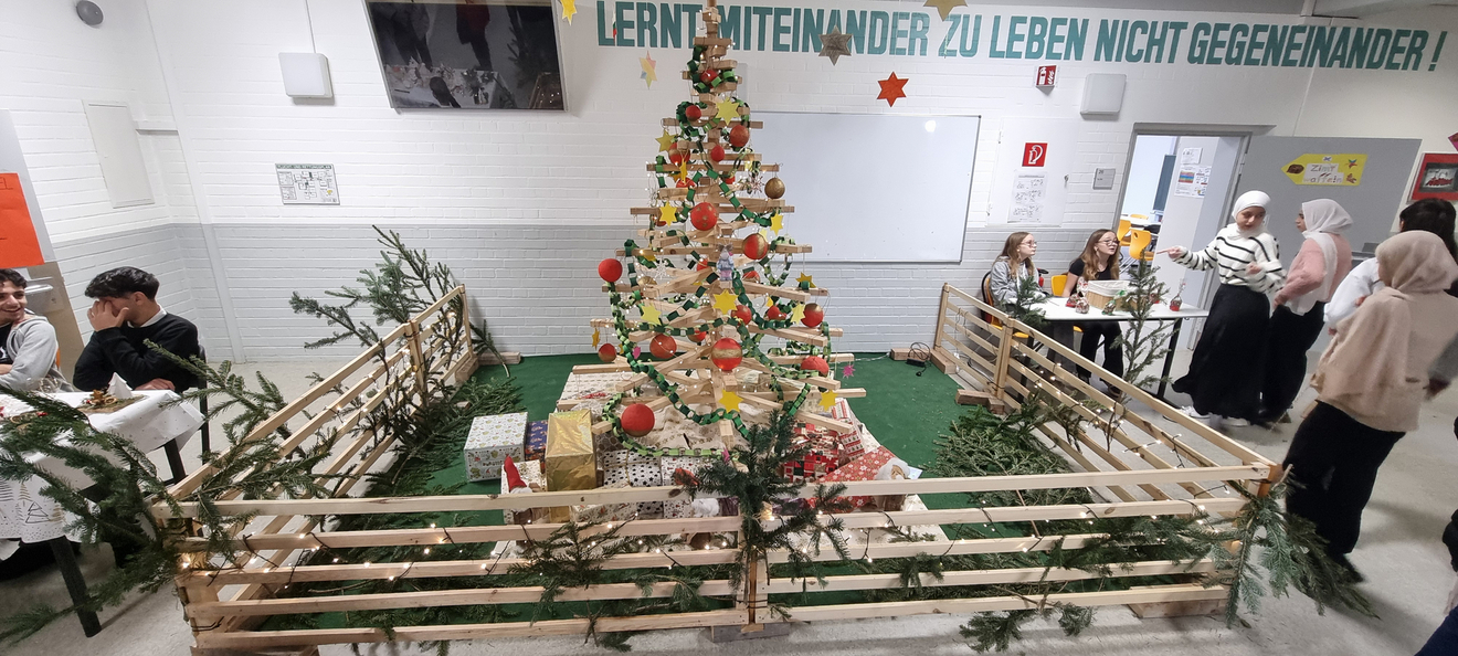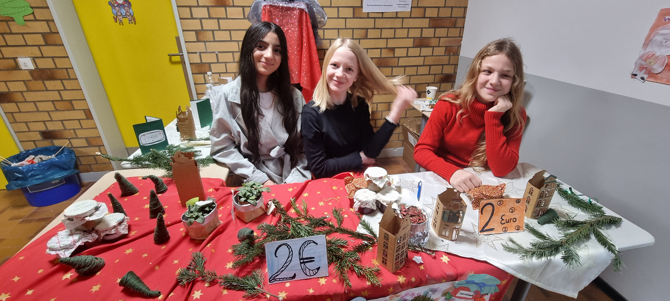Kunstvoll gestaltete Hinweisschilder, der betörende Duft nach Selbstgebackenem, weihnachtliche Klänge aus vielen Sälen und vor allem ein prächtig geschmückter Tannenbaum im Foyer nebst einem zauberhaften Weihnachtsarrangement an zentraler Stelle der Schule ließen keinen Zweifel daran aufkommen, dass Weihnachten naht, das Fest der Liebe, des Friedens und der Freude.