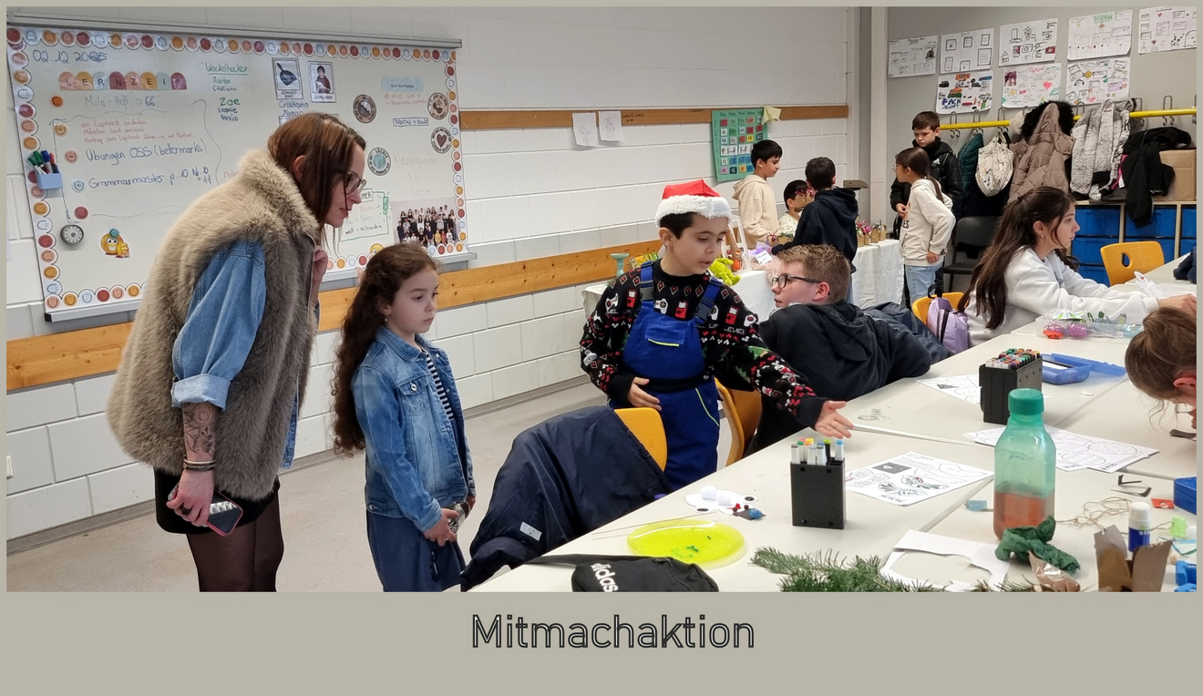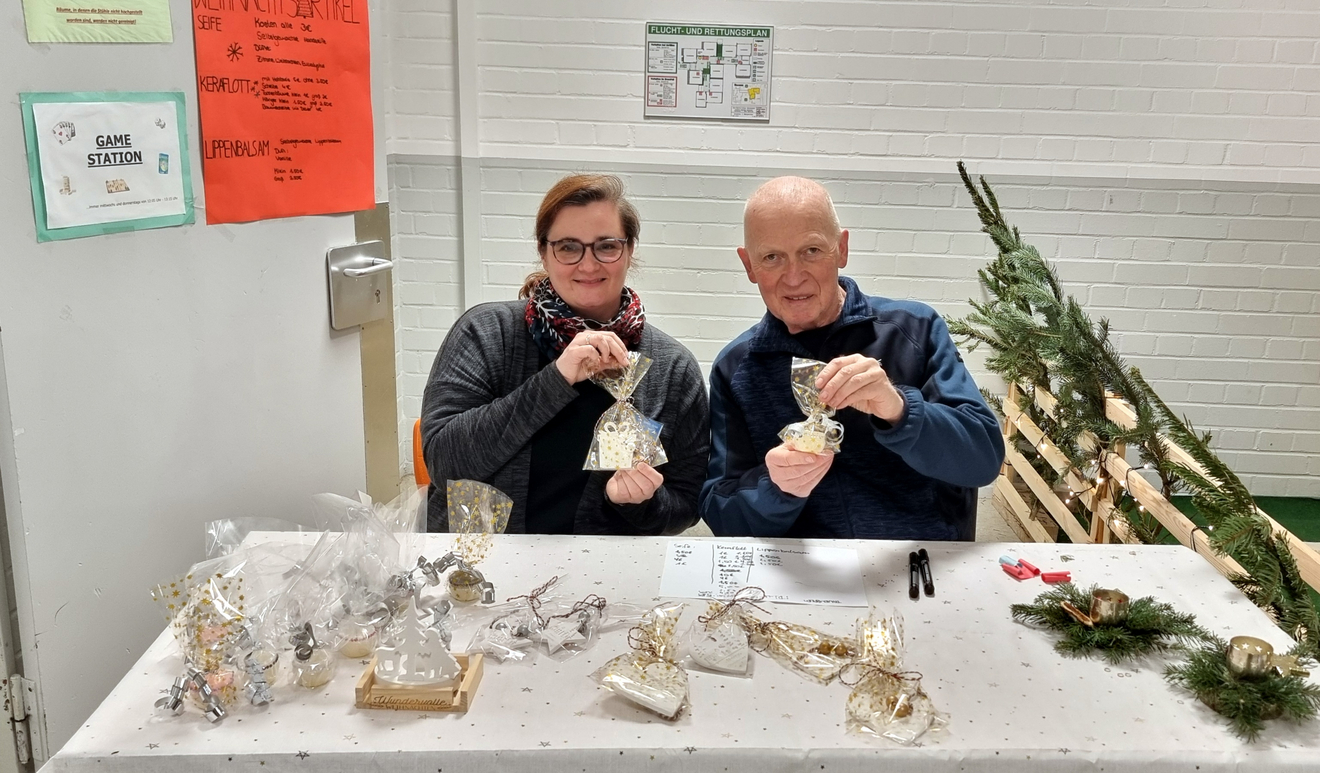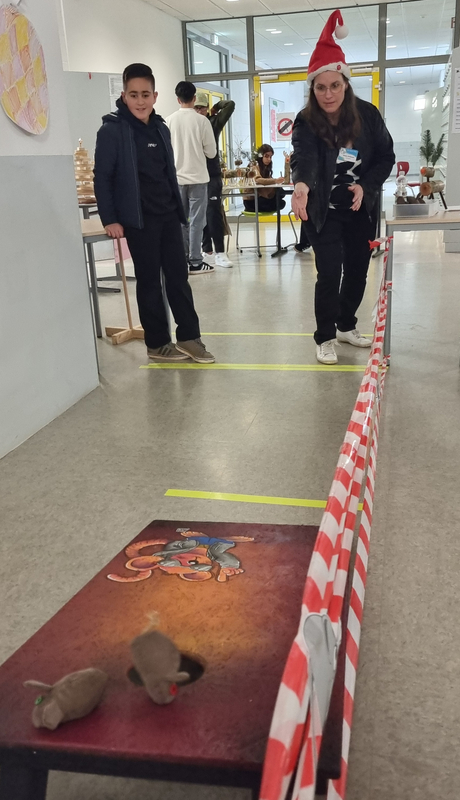 Wer wollte, konnte sich noch das eine oder andere dekorative Weihnachtsgeschenk aus kreativer Bastelarbeit für seine Lieben zuhause sichern. Auf reges Interesse trafen verschiedene Mitmach-Aktionen wie Kerzenziehen, Laubsägearbeiten, Wichtelwerkstatt, Shootings im Winter-Fotostudio, Sterne basteln oder die Verbannung diebischer Weihnachtsmäuse durch gezieltes Werfen in einen gelöcherten Holzkasten. Und auch in diesem Jahr kamen all die vielen Schnäppchenjäger und Glücksritter bei einer gut bestückten Tombola auf ihre Kosten.