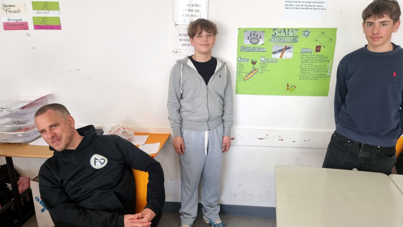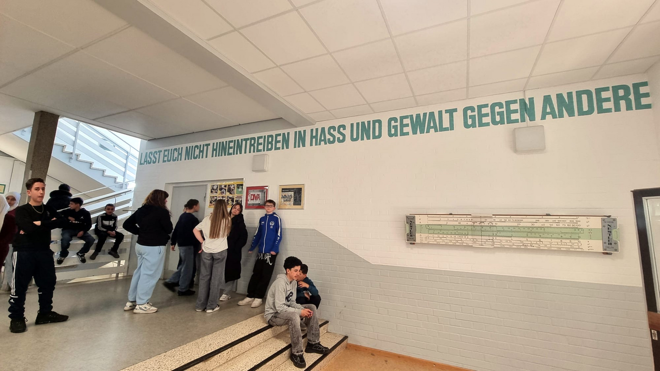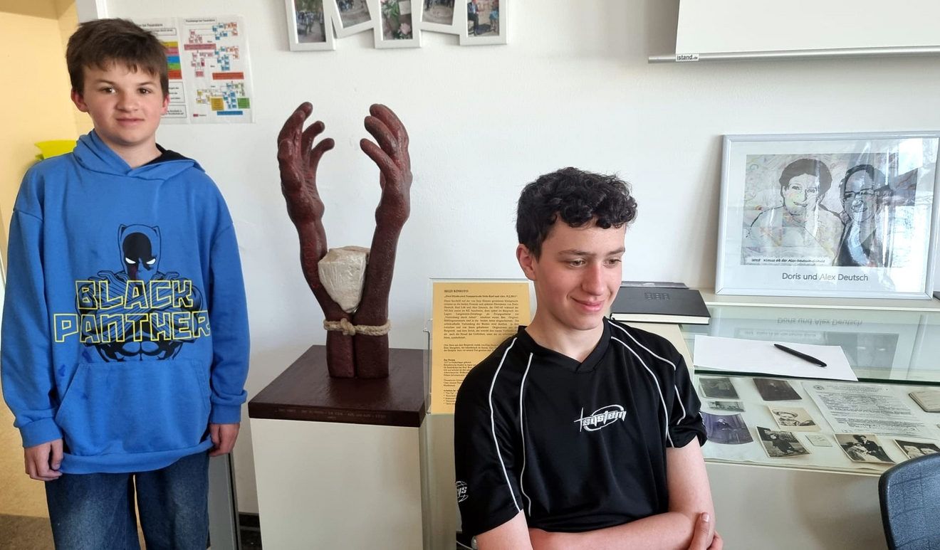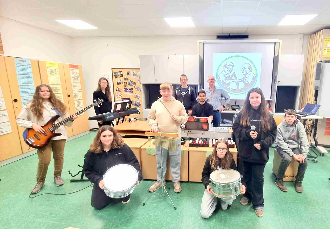 Auch 15 Jahre nach seinem Tod hat die Persönlichkeit des Auschwitz-Überlebenden Alex Deutsch nicht an Bedeutung und Strahlkraft verloren. Gerade jetzt, in Zeiten eines zunehmenden Antisemitismus, vieler unseligen Kriege und Krisen, politischer Bedrohungen von links und rechts, einer entmenschlichten Rethorik und aggressivem Kriegsgetöse auf höchsten politischen Ebenen, erinnert man sich an sein berühmtes Leitmotiv, das er zu Lebzeiten sehr langsam, aber mit fester und getragener Stimme im Verlauf von mehr als 500 Besuchen in Schulen und anderen öffentlichen Einrichtungen verkündete: „Lasst euch nicht hineintreiben in Hass und Gewalt gegen andere Menschen. Lernt miteinander zu leben, nicht gegeneinander!“ „Wenn Alex Deutsch den Raum betrat und zu seinen bewegenden Vorträgen ansetzte, wurde es mucksmäuschenstill im Saal und selbst die sonst besonders lebhaften Schüler verfielen in andächtiges Schweigen“, erinnern sich die wenigen, die ihn noch persönlich erlebten. Stets erschien Alex Deutsch in Begleitung seiner ebenfalls sehr engagierten Ehefrau Doris, die nach dem Tod des Gatten noch über ein gutes Jahrzehnt hinweg die Aufklärungsarbeit in Schulen und anderen Einrichtungen fortsetzte. Apropos Alex Deutsch und die Namensgebung für die Schule. Neben dem 15. Todestag steht auch diesbezüglich ein markantes Datum an. Am 7. September 2001, also vor fast genau 25 Jahren, wurde in einem Festakt unter dem damaligen Rektor Max Rosar die damalige Erweiterte Realschule Wellesweiler nach Alex Deutsch benannt. Das anstehende Jubiläum lieferte letztlich auch einen wichtigen Grund dafür, dass sich jetzt, anlässlich der vorösterlichen Projekttage, viele Schülergruppen besonders eingehend mit der Persönlichkeit, dem Schicksal und den langjährigen Friedensbemühungen von Alex Deutsch befassten. Dafür bot sich neben dem bestens ausgestatteten Alex-Deutsch-Raum auch der Musiksaal als Dreh- und Angelpunkt vieler Veranstaltungen und Feierlichkeiten schlechthin an. Hier sorgte die neu aufgestellte Schulband gemeinsam mit ihren Betreuern Hans-Jürgen Geiger und Jan Grüntjes dafür, dass die Biografie von Alex Deutsch den jungen Besuchern gleich über mehrere Sinne vermittelt wurde: musikalisch, via Leinwand über Archivfotos und auch durch Vorlesen seines dramatischen Lebenslaufes in kleinen Etappen.