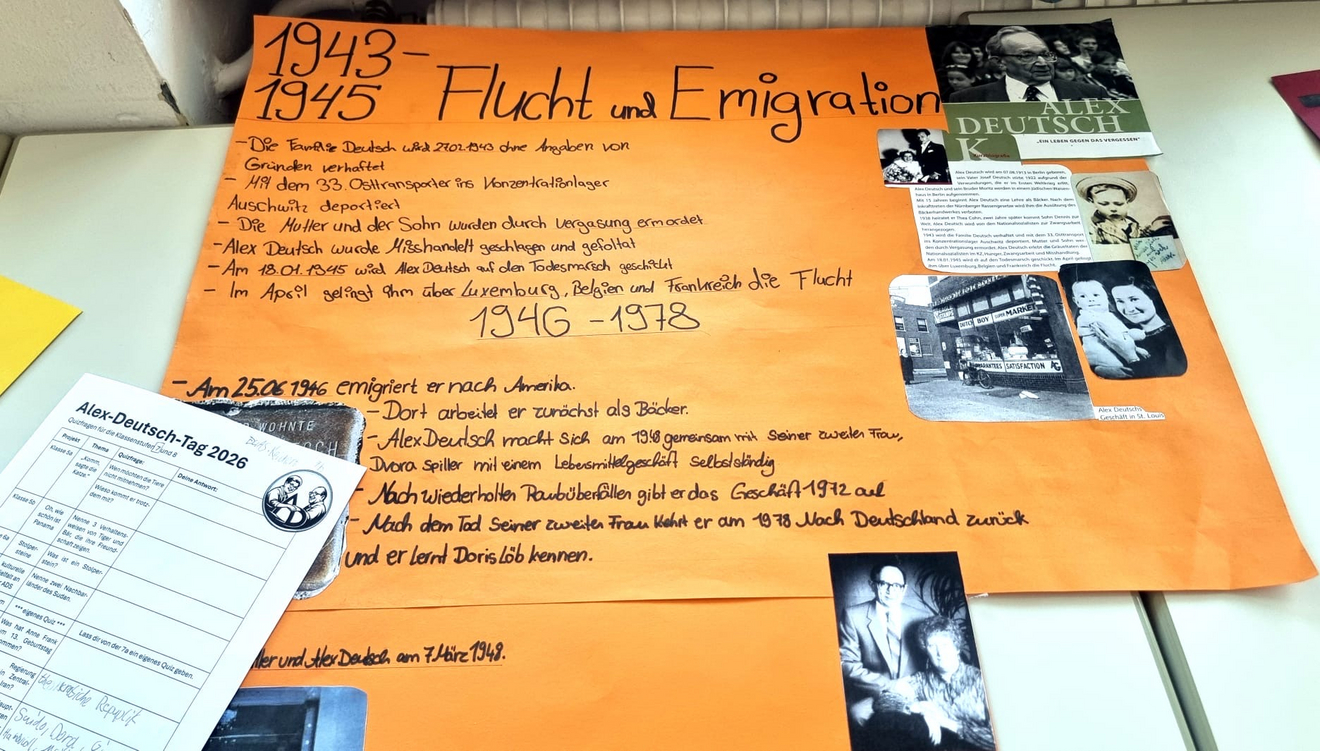 An unserer Schule ist es zu einem guten Brauch geworden, mindestens einmal im Jahr mit thematisch passenden Projekten das Andenken an den 2011 verstorbenen Namensgeber Alex Deutsch wachzuhalten und gleichzeitig einen Beitrag zu einem gewaltfreien und harmonischen Umgang miteinander zu leisten. Die diesjährigen Projekttage vor den Osterferien verliefen sehr erfolgreich.