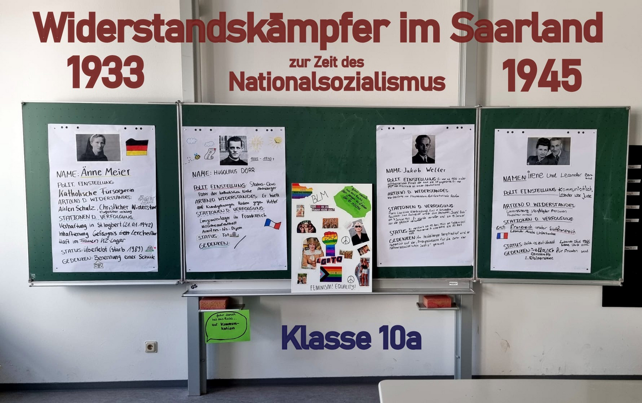 Einen tollen Kurzfilm zu Alex Deutsch hatte die Klasse 9a in Eigenregie produziert und dabei beachtliche Schauspielerqualitäten offeriert. Bekannte Filmklassiker wie „Das Leben ist schön“, „Das Tagebuch der Anne Frank“ oder „Oh wie schön ist Panama“ waren von drei Klassen analysiert und beispielhaft für erschütternde Einzel- und Familienschicksale im Nationalsozialismus aufgearbeitet worden. Studien zur jüdischen Glaubenslehre hatten die beiden siebten Klassen betrieben. Zur Vorbereitung waren sie eigens zur jüdischen Synagoge nach Saarbrücken gereist. Mit dem Schicksal saarländischer Widerstandskämpfer im dritten Reich befasste sich die Klasse 10. Anschauliche Details zu aktuellen Fluchtgründen, Fluchtwegen und Fluchterfahrungen einiger ausgewählten Kinder aus Krisen- und Kriegsgebieten stellte die Klasse 8a auf Plakaten dar. Den Stolpersteinen in Neunkirchen und seinen zugehörigen Stadtteilen als Mahnmale für deportierte und ermordete Menschen im Nationalsozialismus war die Klasse 6a auf der Spur. Die kulturelle Vielfalt an der ADS nahm die Klasse 6b unter die Lupe und fand unter anderem heraus, dass ihre Mitschüler und Lehrkräfte aus insgesamt 30 unterschiedlichen Ländern stammen. „Komm, sagte die Katze“, nannte sich nach literarischer Vorlage von Mira Lobe ein märchenhaftes Theaterstück der Klasse 5a, worin sich die vorurteilsbehaftete Ausgrenzung und Diskriminierung missliebiger Zeitgenossen an den Pranger gestellt sah.
